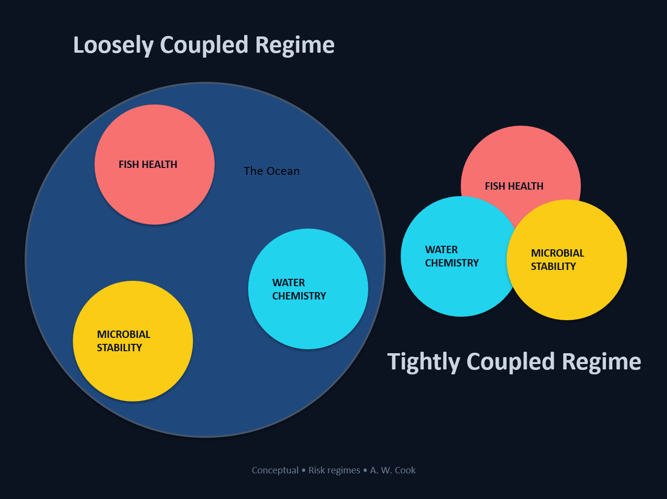 At a high level, aquaculture systems operate within one of two broad risk regimes.