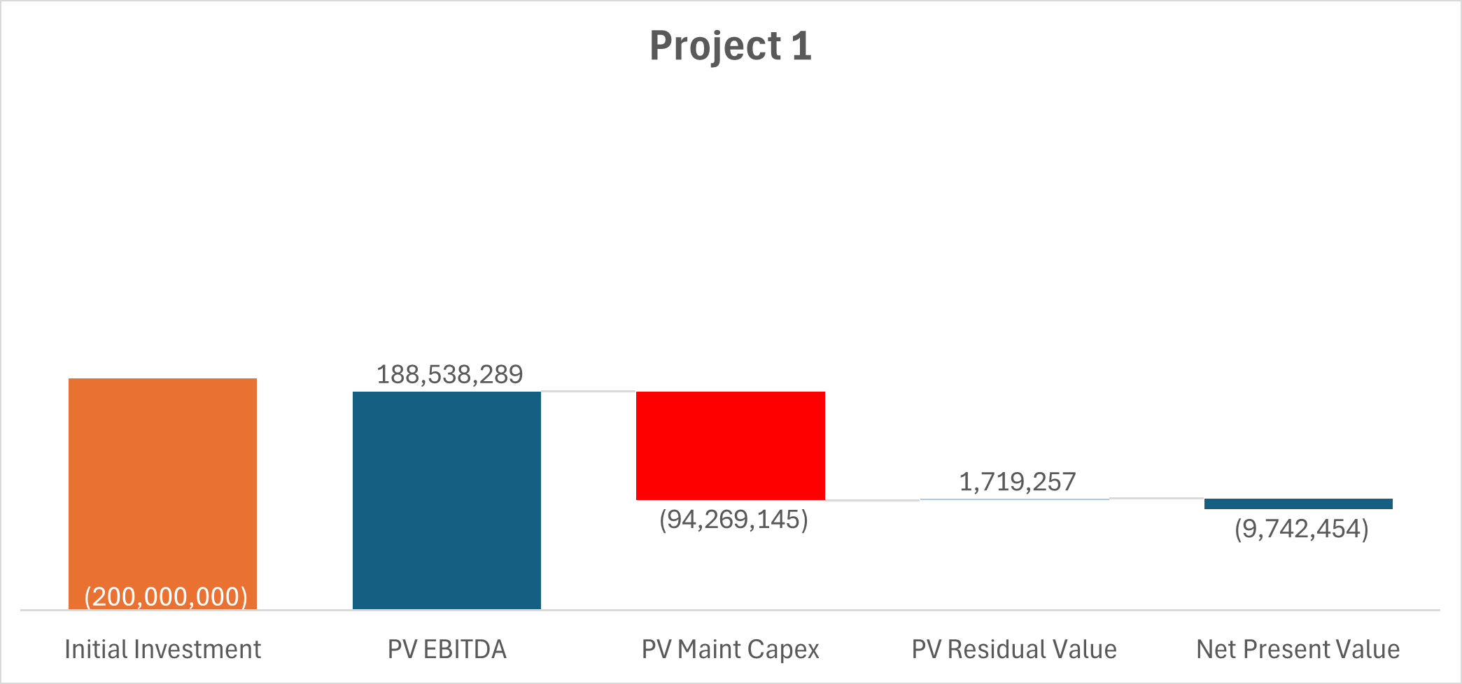 In simplified terms, project value can be thought of as the difference between the operating value generated by the system and the capital required to build and maintain it.